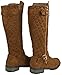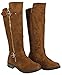 Mango23 Tan Faux Suede Dual Gold Decorative Zipper/Buckle Quilted Motorcycle Riding Knee High Boots-6