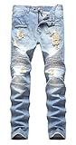 NITAGUT Men's Ripped Slim Fit Tapered Leg Jeans Light Blue-US 32