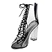 Liliana Clear Translucent Transparent Lace Up Peep Toe Ankle Bootie W Perspex Block Heel,Black,8