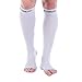 Doc Miller Premium Calf Compression Sleeve 1 Pair 20-30mmHg Strong Calf Support Graduated Pressure for Sports Running Muscle Recovery Shin Splints Varicose Veins (Gray, Open Toe, Large)