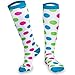 - MAXIMUM COMFORT, COMPRESSION, AND COVERAGE! These fun and colorful Polka Dot compression socks provide supreme comfort, muscle support, and moisture/temperature regulation so that you can recover quickly and get right back to running! The knee high length provides maximum coverage, and these great socks fit a women's shoe size 7.5-10 and men's shoe size 7-9.5