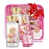 Bath and Body Gift Set for Women & Girls, Rose 2PCS Set for - Body Lotion, Body Mist, Personal Portable Body Care Travel Set for Birthday Mother's Day Gifts for Her and Him
