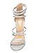 Open-toe heels are designed in sparkly glitter upper and feature a classic toe straps, exposed sides, and an adjustable buckled ankle strap. Finished with a stiletto heel and a soft sole.