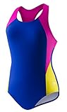 Speedo equals better fit, performance, quality, and innovation. The girl's 7-16 infinity splice one piece is a popular athletic styled basic that is great for young swim team enthusiasts or for any water activity. The suit features trademarked xtra life lycra which lasts 5 to 10 times longer than traditional lycra. So no bag and sag, and it looks like new for longer. With bold colorblock details, it also offers our new no wedgie worries technology, which adds a thin silicone gripper at the inner edge of the bottom to keep the suit in place during activities. Look and feel your best in or out of the water, while you play, train or win in speedo, the choice of champions. Features: 80% Nylon/20% Lycra Hand Wash Xtra life lycra fabric lasts 5 to 10 times longer to give you more value for your money Resists bagging, sagging, and the effects of suntan lotion, skin oils, and chlorine No wedgie worries silicone gripper at leg openings for stay put coverage Sporty thick strap racerback styling for an improved fit and secure comfort.