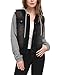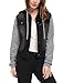 Allegra K Women Layered Drawstring Hood Denim Jacket w Pockets L Black