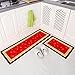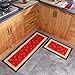 Carvapet 2 Piece Non-Slip Kitchen Mat Rubber Backing Doormat Runner Rug Set, Red Rose Design (Red 15"x47"+15"x23")
