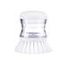 This Kitchenaid aqua Sky soap dispensing palm brush is ready to tackle the toughest cleanup jobs. Designed to fit comfortably in the hand, brush features nylon bristles for performance and durability. A built-in reservoir holds dish detergent, and with the simple push of a button, soap is released into the bristles to remove grease and grime from your dishes. Dishwasher safe.