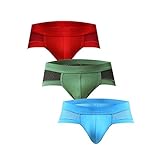 Men's Underwear ,Astarin Steel Micro Modal Hip Briefs (Small, Red-Blue-Black)