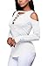 FARYSAYS Women's Sexy Cold Shoulder Blouse Lace-Up Ribbed Tops (Medium, White-2)