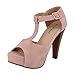 Top Moda Women's Table-1 peep toe platform chunky heel closed back buckle t-strap nubuck pumps Blush 8