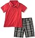 Calvin Klein Baby Boys' 2 Pieces Polo Set-Plaid Shorts, Red, 18M