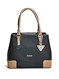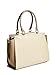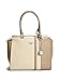 Smooth faux-leather remixed with a pebbled texture, this box satchel features silver-tone hardware and a logo accent at front. Includes multiple interior pockets and leopard-print lining. Removable logo tag. Top zipper closure.