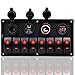 FXC Waterproof Marine Boat Rocker Switch Panel 8 Gang With Dual USB Slot Socket + Cigarette Lighter and adapter + Digital Voltage Display LED Light for Car Rv Vehicles Truck (8 Gang Red Light)