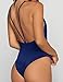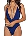 Women Monokini Swimsuits One Piece Bathing Suit Deep V Stylish Backless String (M, Navy Blue)