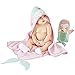 - GIFT SET - Delightful mermaid-themed 4 piece gift set includes a hooded towel, spa slipper set, and terry bath mitt, the perfect baby shower gift parents will love, or a fun bath set for your own newborn!