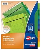 Tabs won't fall out! Special tab design secures inserts, making it easy to insert and remove tab titles. Multicolored dividers with bigger tabs, providing 50% more writing space than standard tabs. Durable plastic allows for frequent reference. Single front pocket style or double front/back pocket style provide extra storage. Easy to customize with free templates and designs using Avery Design & Print (avery.com/print). Handwrite or print inserts for laser and inkjet printers.