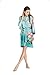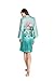 Old Shanghai Women's Kimono Robe Short - Watercolor Floral, Coral Chrysanthemum -Mineral Blue