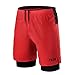 TCA Mens Ultra 2 in 1 Running Shorts with Inner Compression Short and Zip Pocket - High Risk Red/Black, S