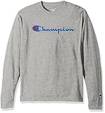 Champion Men's Classic Jersey Long Sleeve Script T-Shirt, White, LG