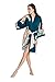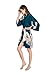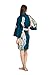 Old Shanghai Women's Kimono Robe Short - Watercolor Floral, Peacock Feather- Teal