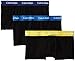 Calvin Klein Men's Cotton Stretch 3 Pack Low Rise Trunks, Black/Sunbeam/Skyview/Satellite, Large