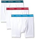 Cotton stretch boxer briefs multipack, classic fit with cotton stretch fabric for comfort and shape retention and a soft, breathable, durable cotton stretch blend waistband with iconic Calvin Klein logo. 3-pack.