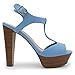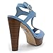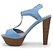 Top Moda Table-1 Women's peep toe platform chunky heel closed back buckle T-strap nubuck pumps, TS Betsey-53 Blue Size 9