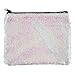 This perfect pouch combines the shimmering beauty of Magic Sequins with the practicality of a fully lined zipper pouch that fits easily into any handbag and can double as an evening clutch. The unique color combination of Pink Iridescent sequins to white with the flip of your wrist will add a pop of color to any wardrobe. Sized at 9.5inches by 7.5-inches which makes this pouch large enough to carry your essentials. Zipper closure will keep all your goodies safe.