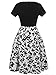 oxiuly Women's Vintage Scoop Neck Floral Pockets Casual Work Swing Dress OX165 (L, Black White)