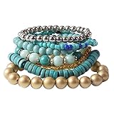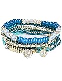 Riah Fashion Women's Multicolor Beaded Stretch Stackable Bracelet (Dark Purple)