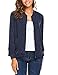 Zeagoo Women Classic Solid Biker Jacket Zip Up Bomber Jacket Coat,Navy Blue5,Large