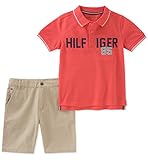 Tommy Hilfiger Boys' 2 Pieces Polo Shorts Set, Strawberry Red, 3T