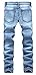 Men's Blue Biker Moto Distressed Patched Fashion Skinny Slim Fit Denim Jeans