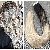 Ugeat 14inch 50Gram Tape in Remy Human Hair Extensions Jet Black #1 Tape Hair Extensions for Black Women Double Sided Tape Seamless Skin Weft Thick End