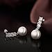 Women Freshwater 10mm White Pearl Dangle Drop Earrings 925 Sterling Silver Shell Pearl With CZ Hypoallergenic Stud Earring