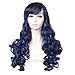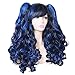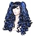 ColorGround Long Curly Multi-Color Cosplay Wig with 2 Ponytails(Black with Blue)