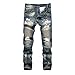 Men's Vintage Biker Moto Jeans Skinny Fit Ripped Destroyed Distressed Denim