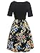 oxiuly Women's Vintage Patchwork Pockets Puffy Swing Casual Party Dress OX165 (S, Black Floral)