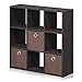 Furinno 13207DWN Simplistic 9-Cube Organizer with Bins, Dark Walnut