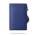 Womens Slim Wallet for Small Purses, Pop Up Wallet with Anti Theft RFID Blocking Credit Card Holder for Women in Navy Blue PU Saffiano