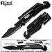 Rtek 9" Tactical Spring Assisted Black Survival 7 in 1 Rescue Pocket Knife LED Light Fire Starter Blade Sharpener Bottle Opener Glass Breaker Belt Cutter (Black)
