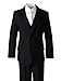 This complete suit is tailored trimmer than our popular classic fit tuxedo. The suit has narrower lapel and slightly tapered waist, narrower through body and longer jacket length. The front upper pocket is sewn shut at delivery but can be opened to accomodate a hankerchief. Vest has adjustable strap at back. For size 2T-4T, pants has flat front and elastic back. For size 5 to 20, pants has button zipper front and elastic sides.