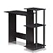 FURINNO Efficient Home Laptop Notebook Computer Desk, Square Side Shelves, Dark Walnut