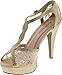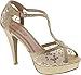 Top Moda Hy-5 Formal Evening Party Lace Ankle T-Strap Peep Toe Stiletto High Heel Pumps,Gold,7.5