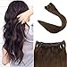 Full Shine 18inch Fish Wire Hidden 80g Hairpiece Straight Flip Real Human Hair Extensions Dark Brown Double Weft Fish Line Invisible Hair Extension