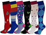 6 Pairs Pack Women Travelers, Anti-Fatigue, Graduated Compression Knee High Socks 9-11 (Assorted #6)