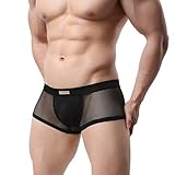 FOREST Men's Boxer Briefs Sexy Mesh Breathable Underwear Low Rise Cool Boxer(36Hei,M)