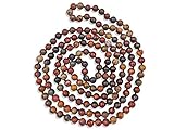 - Each bead is individually hand knotted with great cord strength in dark brown thread.