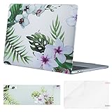 MOSISO MacBook Pro 13 Case 2018 2017 2016 Release A1989/A1706/A1708, Plastic Pattern Flower Hard Case & Keyboard Cover & Screen Protector Compatible Newest Mac Pro 13 Inch, Lily on White Base