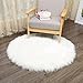 CHITONE Round Faux Fur Sheepskin Rugs, Soft Shaggy Area Rug Home Decorative Bedroom Fluffy Carpet Rug, Diameter 3 Feet, White